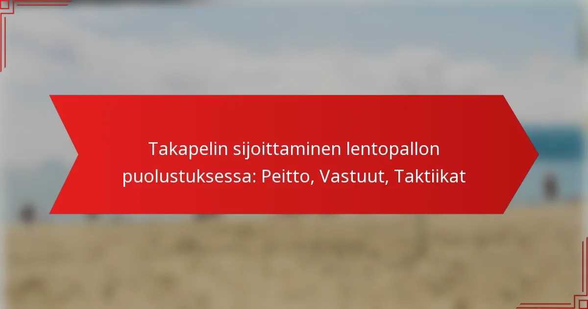 Takapelaajat lentopallon puolustuksessa näyttelevät tärkeää roolia vahvan puolustusrakenteen ylläpitämisessä vastaanottamalla syöttöjä ja peittämällä hyökkäyksiä. Heidän sijoittumisensa on olennaista tehokkaalle kenttäpeitolle, mikä mahdollistaa nopean reagoinnin vastustajien peliin. Hallitsemalla taktisia lähestymistapoja ja edistämällä viestintää takapelaajat voivat merkittävästi parantaa joukkueensa kokonaissuoritusta.